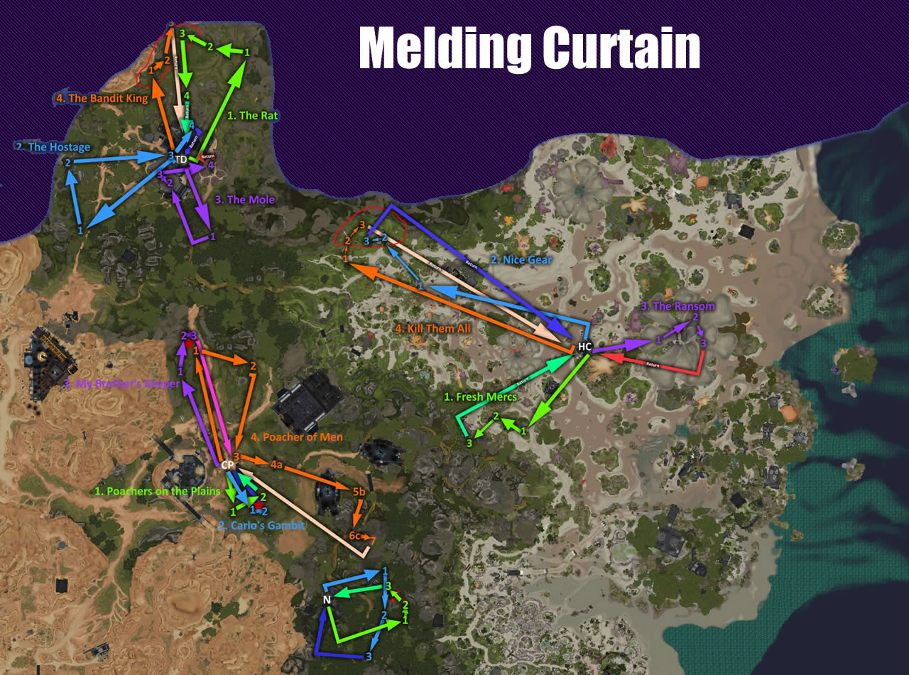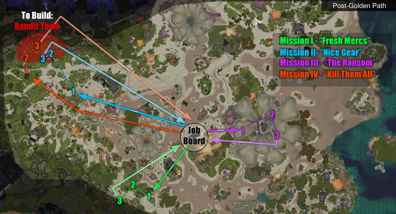 The original mission system chained together multiple tasks to create what we called an arc. The location of each step of an arc was selected by the server’s mission director to ensure that each player, or squad, had a dedicated play-space. Once the player arrived at the designated play-space, the target monsters or interactables would spawn for the player to complete the task.
